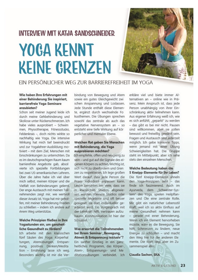 RehaTreff - das Magazin für Menschen mit Mobilitätseinschränkung, Ausgabe 2/2018 - Interview "Making Yoga Accessible to People with Disabilities"